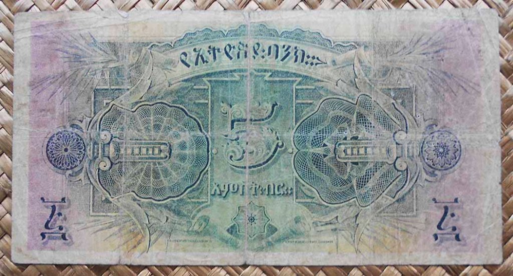 Vamos a revisar la primera serie de billetes emitidos en su Reino por el Banco de Etiopía, una vez fue liquidado el Banco de Abisinia (nombre que ostentó hasta el primer tercio del s. XX). Sería el emperador Haile Selassie quien comprara en 1931 en Banco de Abisinia (fundado en 1905 por el anterior emperador Menelik II), reorganizándolo como Banco de Etiopía.