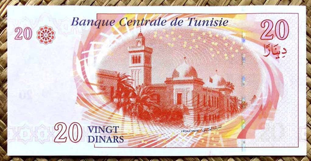 Sus reversos nos ofrecen el dibujo del Arco del Triunfo de Trajano, conservado en la ciudad de Timgad (antigua ciudad romana de Thamugadi) en el nordeste argelino, también conocida como la Pompeya de Africa y Patrimonio de la Humanidad de la UNESCO desde 1982. Se completa la viñeta con bajorrelieves laterales y ornamentos florales multicolores al pie. Leyendas y numeraciones en árabe en tonos morados. Cromaticidad en tonos amarillos, grises, verdes y azules.