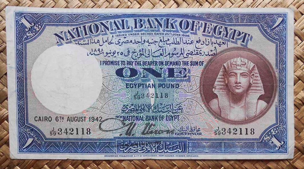 El billete de 1 libra de Egipto de 1942 nos muestra en el anverso a Tutankhamon y en el reverso imagen de un minarete que pudiera ser de la Mezquita Al-Mansour Seif al-Dine Qalawun en el Complejo Sultan al-Mansur Qalawun de El Cairo.